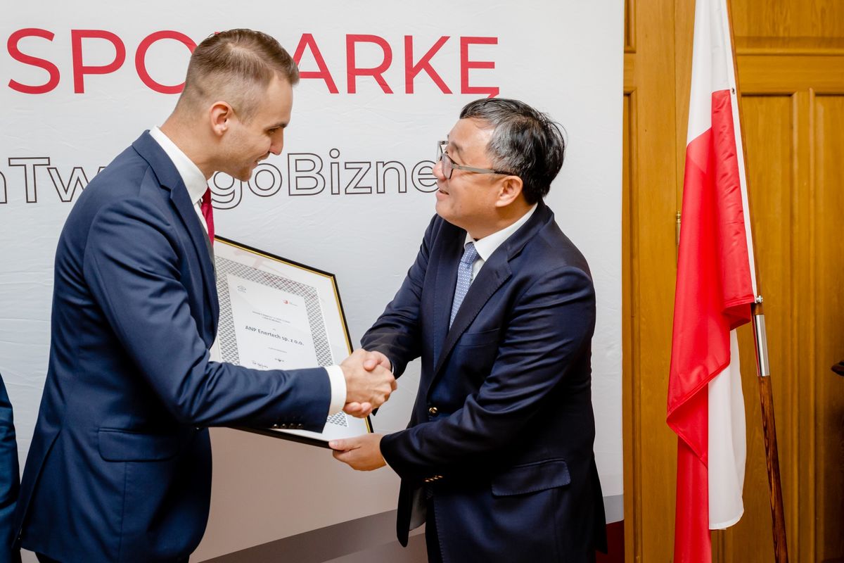 The ceremonial presentation of the decision to support the investment and the transfer of the act of the sale of the land in the presence of the Chairman of ANP’s Management Board Changwoo Park, the Chairman of ANP Enertech’s Management Board Kwangmin Lee and a representative of PAIH and WSEZ took place on October 19, 2022, in the Opole branch of the Wałbrzych SEZ.