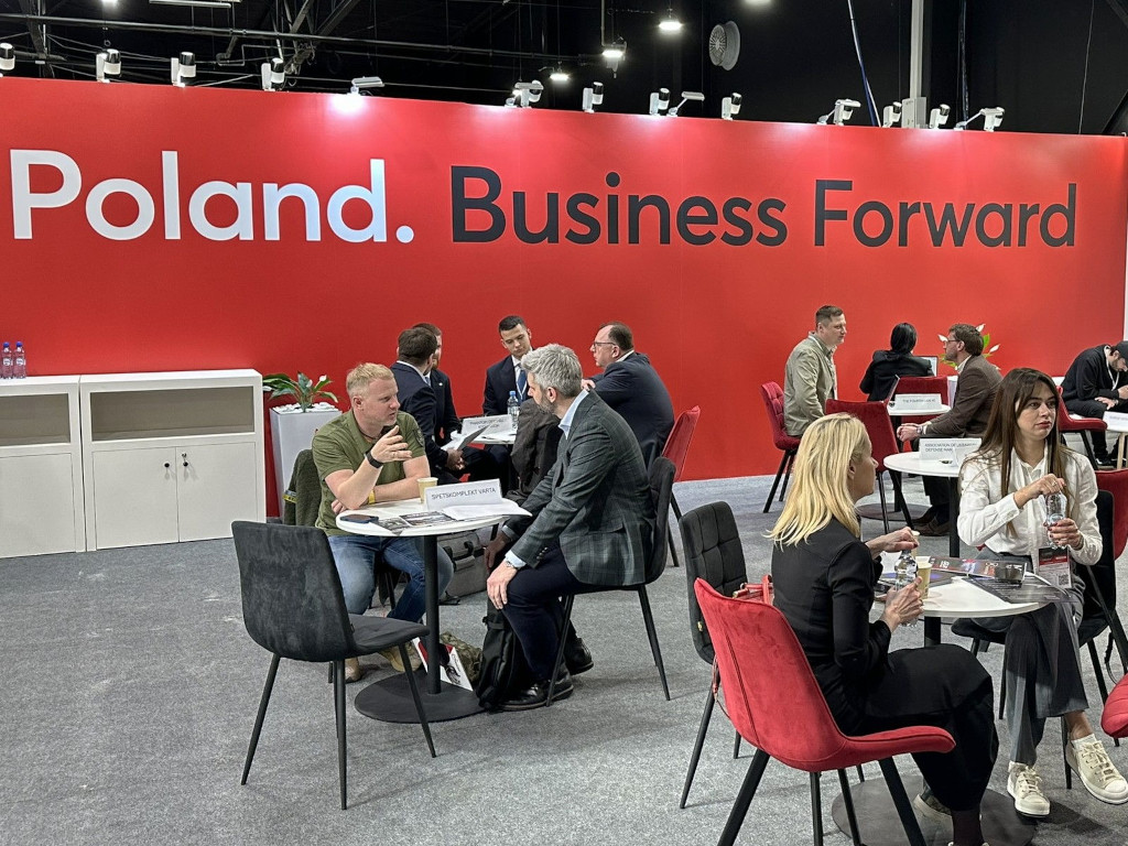 Stoisko Polskiej Agencji Inwestycji i Handlu podczas targów było również miejscem prezentacji instrumentów wsparcia dla polskich firm planujących ekspansję na rynek ukraiński, a także inicjatyw realizowanych w ramach współpracy instytucji skupionych wokół inicjatywy Team Poland for Ukraine.